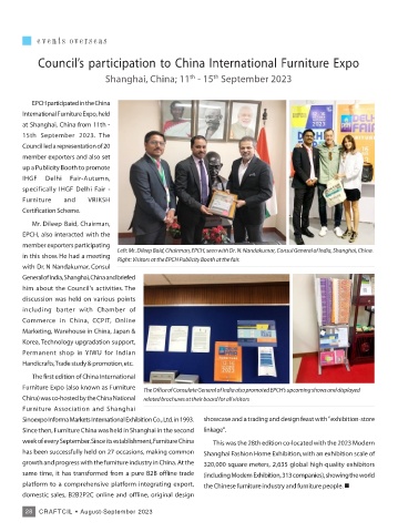 Furniture Expo (also known as Furniture The Office of Consulate General of India also promoted EPCH’s upcoming shows and displayed