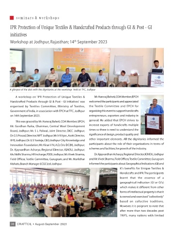 A workshop on ‘IPR Protection of Unique Textiles & Mr. Hansraj Baheti, COA Member, EPCH