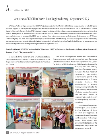 Regeneration of Traditional Industries) Clusters in the ‘Manthan Kalakshetra in Guwahati, Assam from September 1 to 3, 2023.