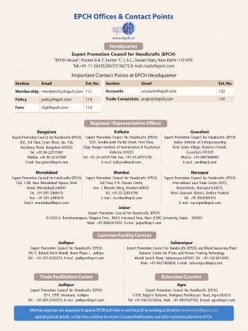 Tel.: +91-291-2720373; E-mail: jodhpur@epch.com Tel: +91-562-2210246; Mob: +91-9837067762; E-mail: agra@epch.com