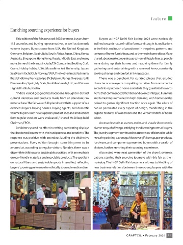 volume buyers. Buyers came from USA, the United Kingdom, in the finish and touch of woodware, in the prints, patterns, and