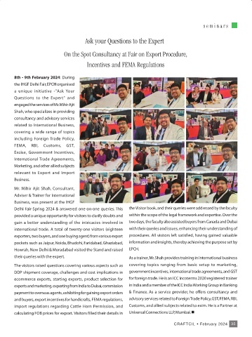 and buyers, export incentives for handicrafts, FEMA regulations, advisory services related to Foreign Trade Policy, GST, FEMA, RBI,