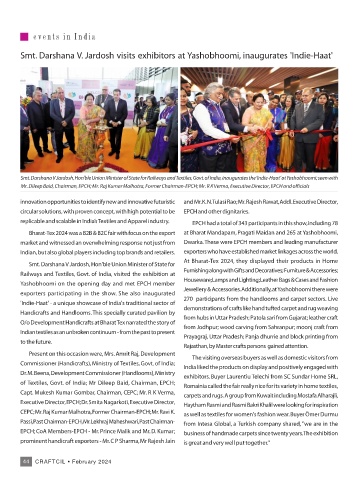Smt. Darshana V Jardosh, Hon'ble Union Minister of State for Railways and Textiles, Govt. of India, inaugurates the ‘Indie-Haat’ at Yashobhoomi; seen with