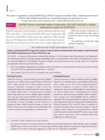 This column is compiled by Consultant [EXIM Policy] of EPCH. It contains recent Public Notices, Notifications and Circulars