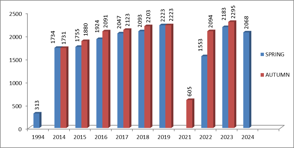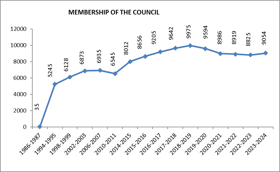 Council rose from 35 in year 1986-87 to 9054 in 2023-24.